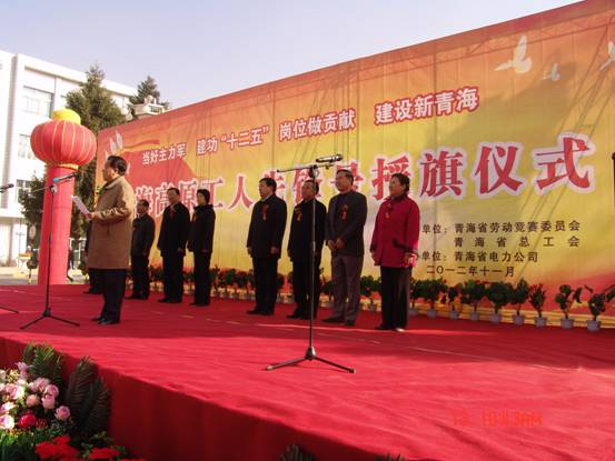 11月13日上午,省勞動(dòng)競賽委員會(huì)、省總工會(huì)舉行青海高原"工人先鋒號(hào)"授旗儀式。省委常委、省勞動(dòng)競賽委員會(huì)常務(wù)副主任、省總工會(huì)主席蘇寧、省總工會(huì)常務(wù)副主席郎國清、經(jīng)審委員會(huì)主任劉西昆、副主席劉華芳等領(lǐng)導(dǎo)參加授旗儀式,并為榮獲青海高原"工人先鋒號(hào)"的青海長春炭素有限公司成型車間等40個(gè)先進(jìn)集體授旗。