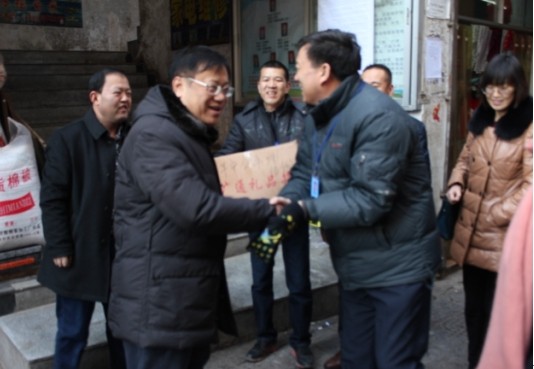 集團(tuán)領(lǐng)導(dǎo)一行先后來到省三建公司汽配市場(chǎng)、三明市場(chǎng)、付家寨、平安分市場(chǎng)、臨空公司施工現(xiàn)場(chǎng)、朝陽物流和機(jī)電市場(chǎng)、配送公司倉庫、現(xiàn)代物流家美家具建材城、長(zhǎng)春炭素、康寧公司、工業(yè)投資公司生產(chǎn)車間和項(xiàng)目現(xiàn)場(chǎng)、物產(chǎn)民爆公司倉庫以及物產(chǎn)汽貿(mào)公司上海大眾4S店等生產(chǎn)經(jīng)營第一線,深入了解春節(jié)期間生產(chǎn)經(jīng)營情況、安全生產(chǎn)情況,親切慰問堅(jiān)守在一線的廣大員工,將慰問品分發(fā)到值守人員手中,帶去集團(tuán)領(lǐng)導(dǎo)暖暖的問候和衷心的祝福。每到一處,集團(tuán)領(lǐng)導(dǎo)同一線員工一一握手,詳細(xì)詢問節(jié)日期間值班和職工生活安排情況,同時(shí)對(duì)堅(jiān)守崗位的職工給予充分的肯定和高度的贊揚(yáng),為他們?cè)诠?jié)日期間舍小家為大家的奉獻(xiàn)精神表示衷心的感謝。王玉輝總經(jīng)理情深意長(zhǎng)地說:正是因?yàn)橛辛艘痪€員工的勤奮和努力,才確保了集團(tuán)系統(tǒng)生產(chǎn)經(jīng)營的平穩(wěn)運(yùn)行,感謝大家!同時(shí)要求所屬公司領(lǐng)導(dǎo)春節(jié)期間一定要安排好職工的生產(chǎn)生活,并做好各項(xiàng)安全防范工作。